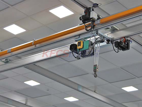 洁净室厂房车间应用铝合金起重机,可以实现物料的轻松搬运,在洁净室、无尘室被广泛运用而且具有出色的功能,因为一切部件都能够任意组合。因此,